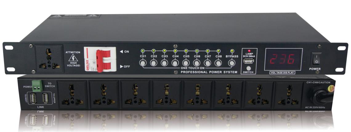 6.每路輸出采用萬(wàn)能插座,適合各種類型插頭使用。