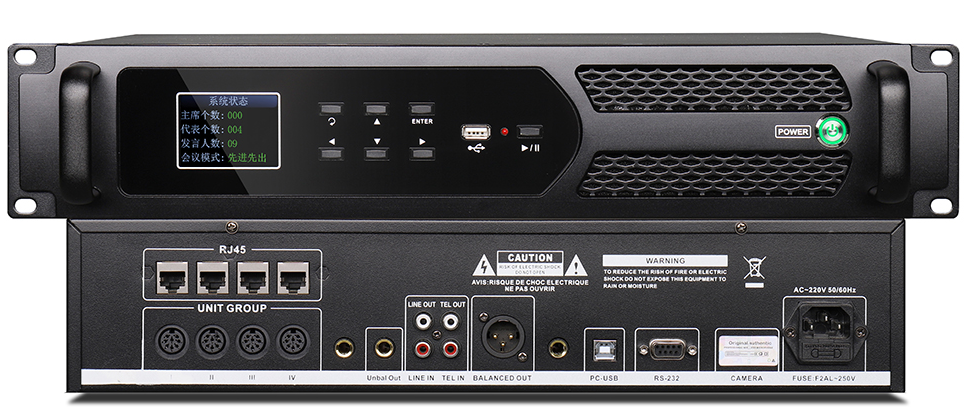 四路話筒連接,8芯會(huì)議線/網(wǎng)線連接,每路支持30個(gè)單元,可接120個(gè)單元,12支主席單元